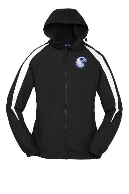 Versatile and comfortable, this jacket has athletic colorblocking and includes a three-panel hood to shield you from unexpected wind and rain.